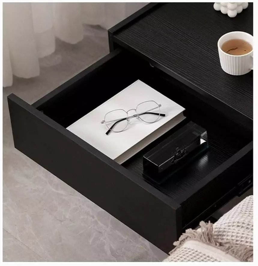 An elegant bedside table with a modern design that complements various decor styles. Made of high-quality engineered beech wood with a sturdy metal base for durability and stability. Easy to clean with a simple wipe, it's ideal for small spaces. Available in two colors. It comes with a two-year warranty against manufacturing defects. An ideal choice for adding a practical and elegant touch to your bedroom.