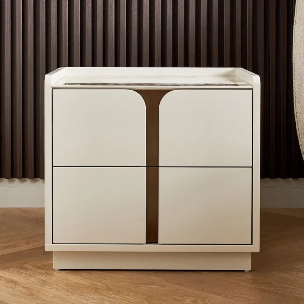 French-style bedside table. A bedside table is an essential piece of furniture in any bedroom, providing a practical surface for setting your alarm clock, book, or glass of water before bed. It also adds an aesthetic touch to the room and complements its décor.