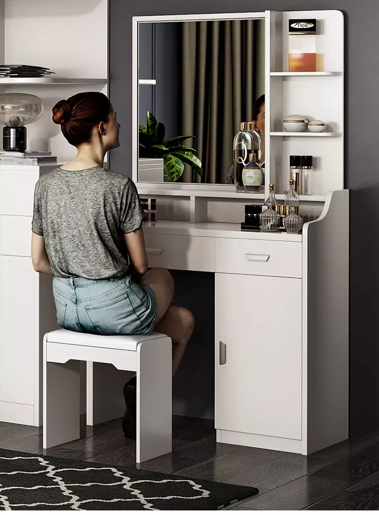 - الطقم يحتوي على الكثير من مساحات التخزين مثل أسفل السرير والخزانة وأدراج التسريحة والطاولات للتمكن من تنظيم أغراضك وتمنع الفوضى من المنزل.