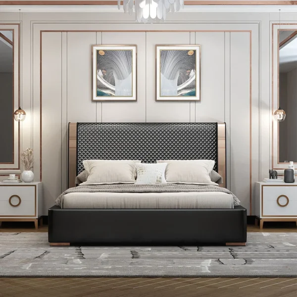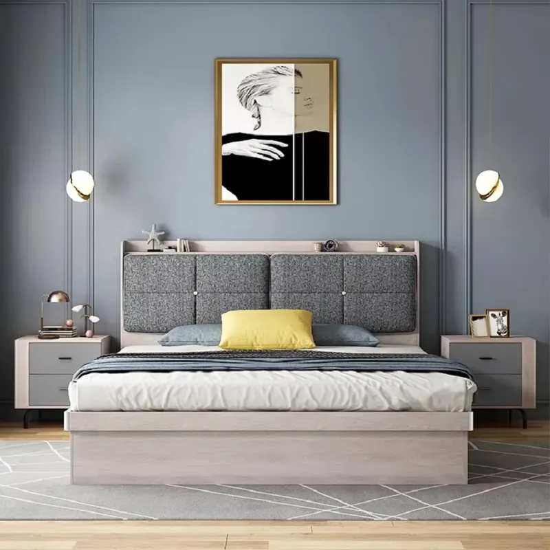 تم تصميم هذه الغرفة بعناية لتناسب مختلف أنماط الديكور العصري والكلاسيكي. اللون المميز يضيف لمسة من الفخامة والدفء، بينما يوفر ظهر السرير المبطن بالقماش الناعم والإسفنج عالي الكثافة راحة استثنائية أثناء الاسترخاء أو القراءة.