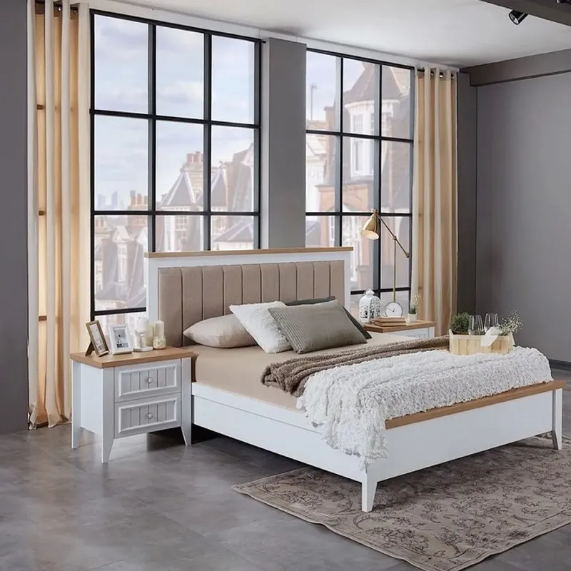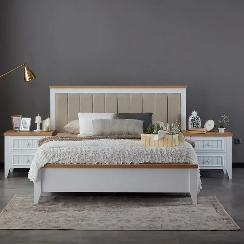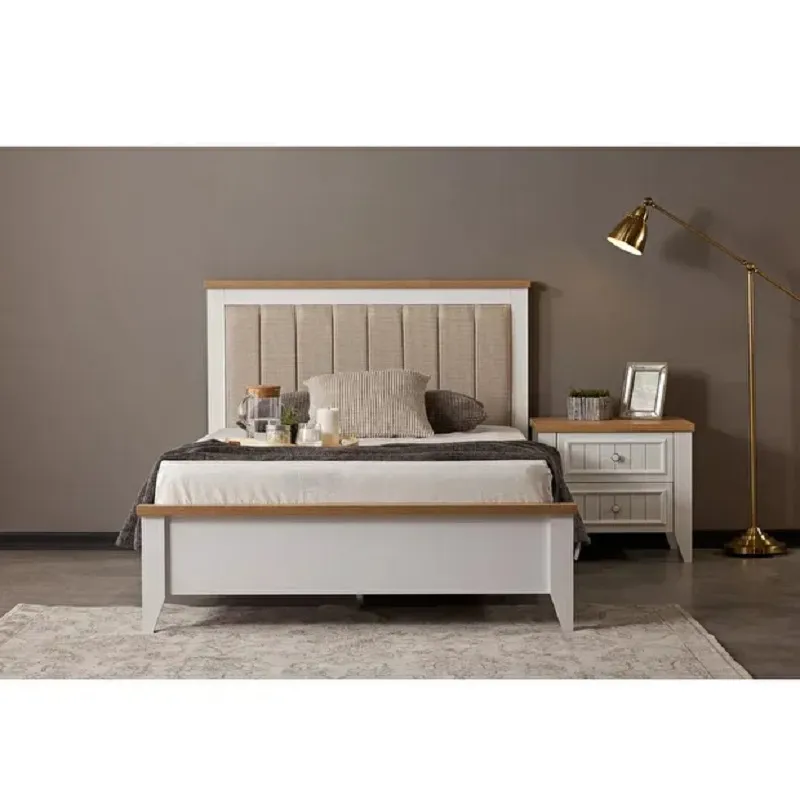 سرير فاخر: مصنوع من خشب هندسي وخشب زان روماني متين، مع طبقة قماش ناعمة ومبطنة بالإسفنج عالي الكثافة والمرونة لتوفير أقصى درجات الراحة.