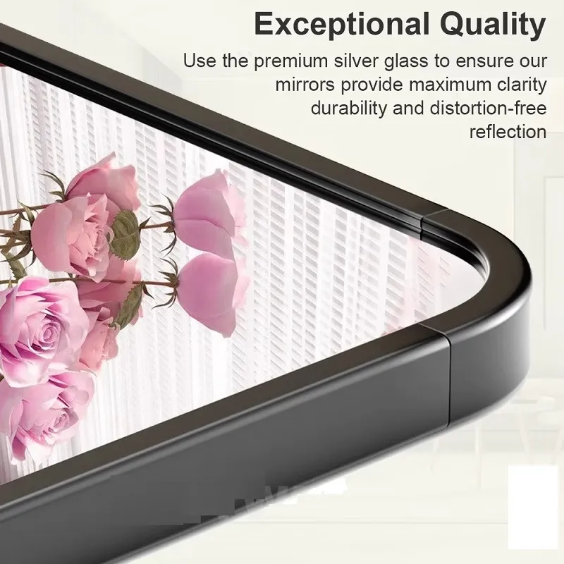 تم تصنيع هيكل المرآة من إطار معدني صلب ومتين عالي الجودة، ما يضمن ثباتها وقوة تحملها على المدى الطويل. كما أن الزجاج المقوى المقاوم للصدمات يعزز من مستوى الأمان، ليمنحك تجربة استخدام آمنة وموثوقة داخل منزلك.