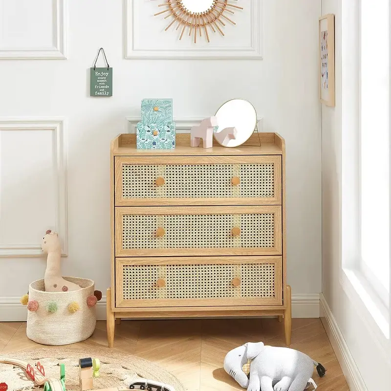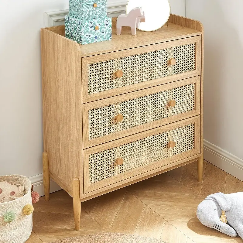 A stylish storage unit in a modern Scandinavian style, crafted from durable, high-quality beech wood with a natural wood color that adds warmth to the room. It's practical in size, perfect for bedrooms and hallways, and comes with a two-year warranty in Saudi Arabia and the Gulf countries.