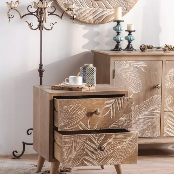 This side table is more than just a piece of furniture; it's a practical and beautiful addition that enhances the well-being and usability of your space. Make your bedroom more organized and elegant with this distinctive piece.
