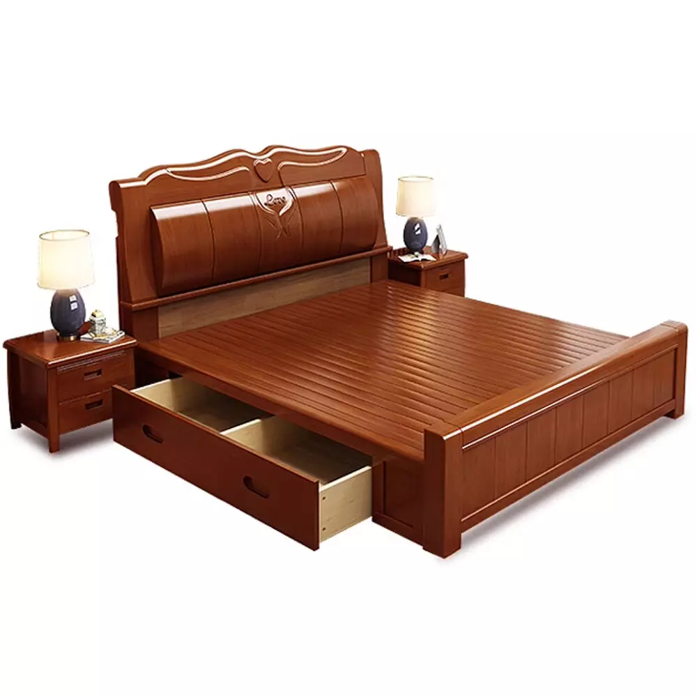 - Pieces: bed, two side tables, dressing table, wardrobe.