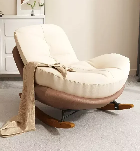 كرسي هزاز مودرن يوفر الراحة والفخامة في تصميم عصري وأنيق. مصنوع من هيكل معدني قوي، مغطى بجلد فاخر مع مقعد محشو بإسفنج عالي الجودة ومغطى بقماش ناعم. يتميز بأرجل من خشب هندسي وخشب زان روماني لضمان الثبات والمتانة. مثالي للاسترخاء في غرفة المعيشة أو أي مكان ترغب في إضافة لمسة من الراحة. يأتي بمقاسات مناسبة لسهولة الجلوس والتمدد، مع ضمان لمدة سنتين ضد عيوب التصنيع.