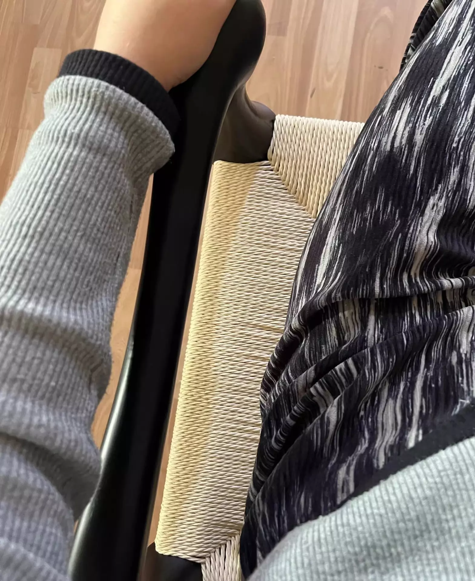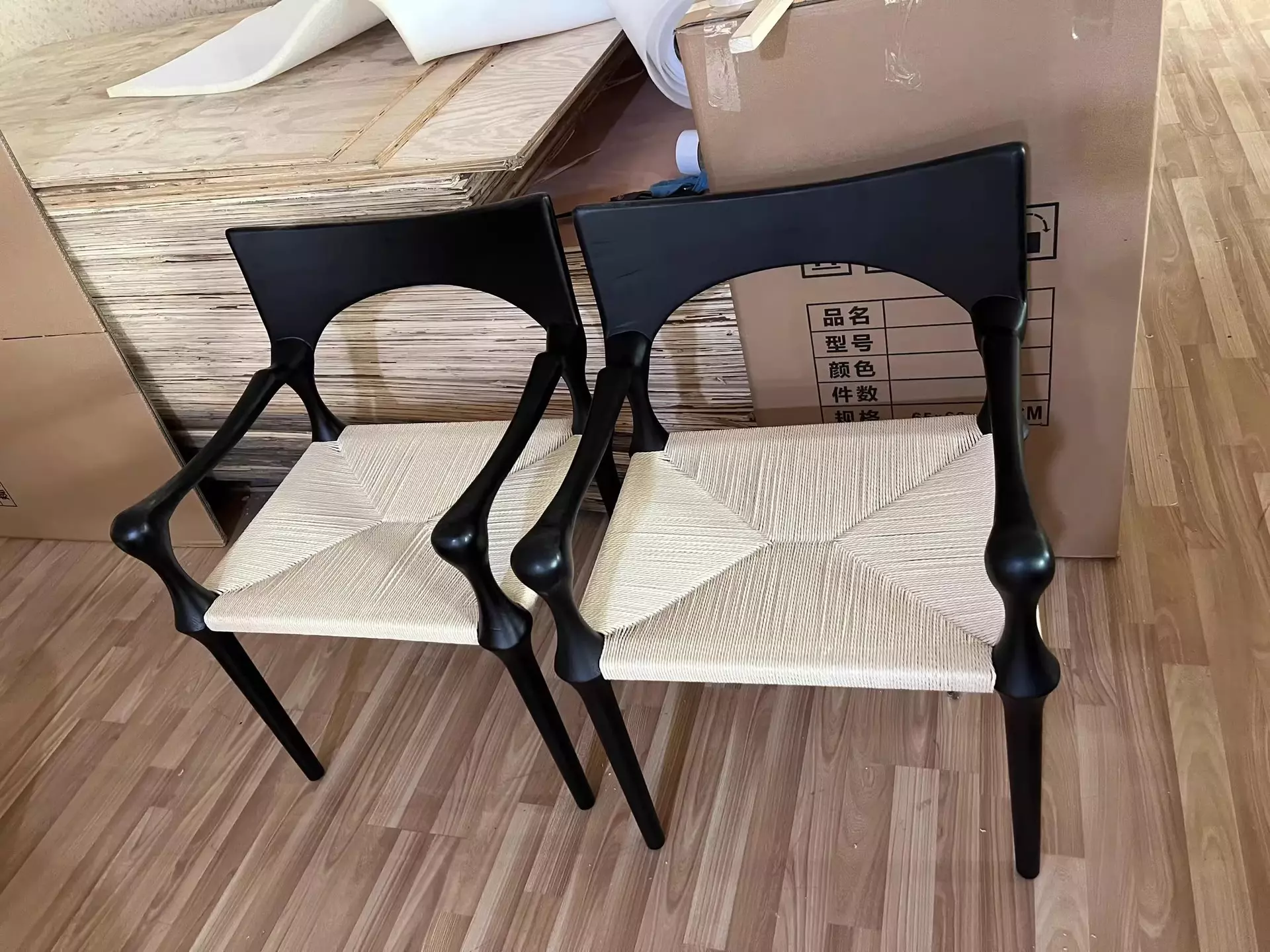 كرسي طاولة الطعام هذا مصنوع من هيكل خشبي هندسي وخشب زان روماني عالي الجودة، مما يضمن المتانة والقوة. المقعد مصنع يدوياً من خيط نسيجي متين عالي الجودة، مما يضيف راحة وجمالية للكرسي.