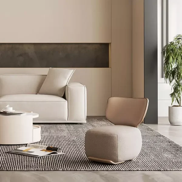A single chair with a modern Scandinavian design, combining elegance and comfort. It's crafted from high-quality engineered wood and Roman beech wood, filled with high-quality foam, and covered in luxurious leather. It's easy to clean with just a light wipe. Available in several colors to suit all tastes. It comes with a two-year warranty against manufacturing defects in the GCC.