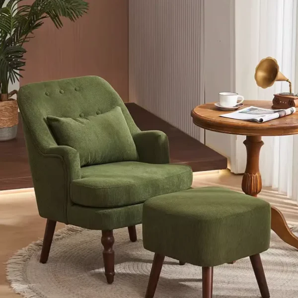 This modern recliner chair with footrest adds an elegant touch to your living room. Made from high-quality materials such as engineered wood and Roman beech, it's upholstered with soft foam. Available in multiple colors, it comes with a two-year warranty against manufacturing defects.