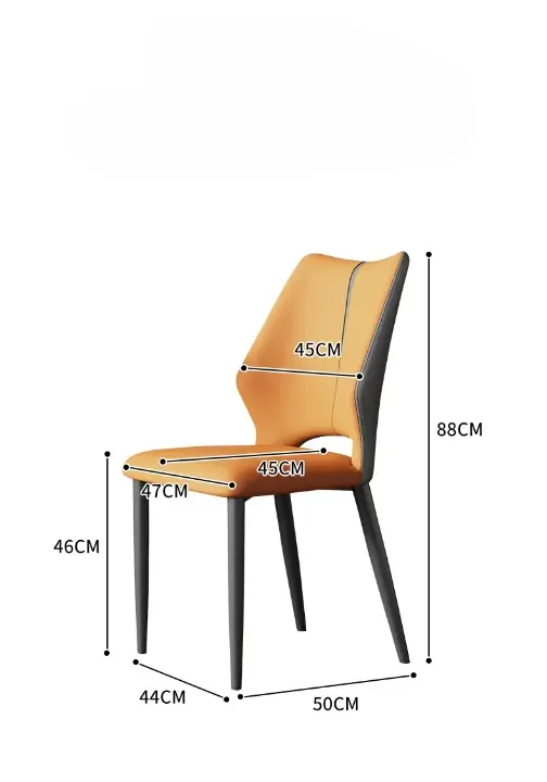 This luxurious leather dining chair adds an elegant and distinctive touch to any space. Made from a durable, high-quality metal base, it boasts a modern design and exceptional comfort. Available in multiple colors, it comes with a two-year warranty against manufacturing defects.