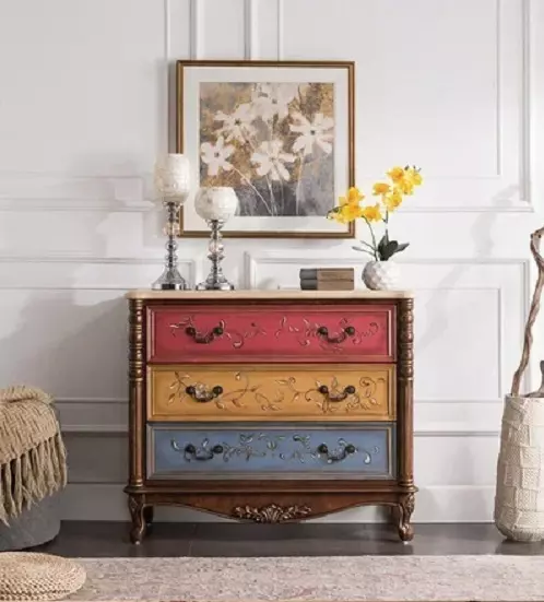This wooden chest of drawers is ideal for the living room, combining beauty and practicality. Made from high-quality engineered wood and Roman beech wood, it ensures durability and elegance. Available in multiple sizes to suit your needs, it is easy to clean with a soft wipe. The assorted colors add an aesthetic touch to any decor. It comes with a two-year warranty against manufacturing defects in the GCC.