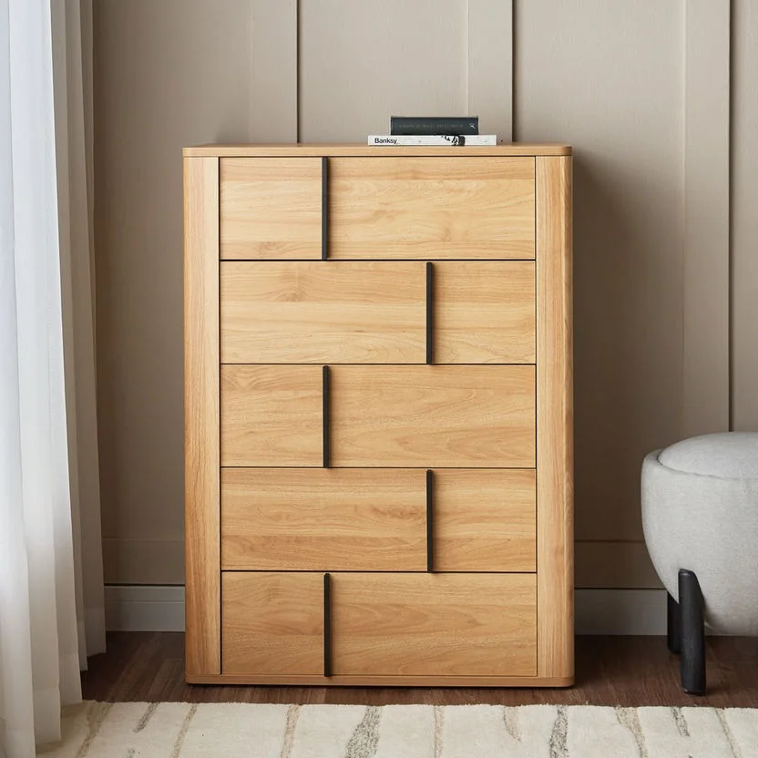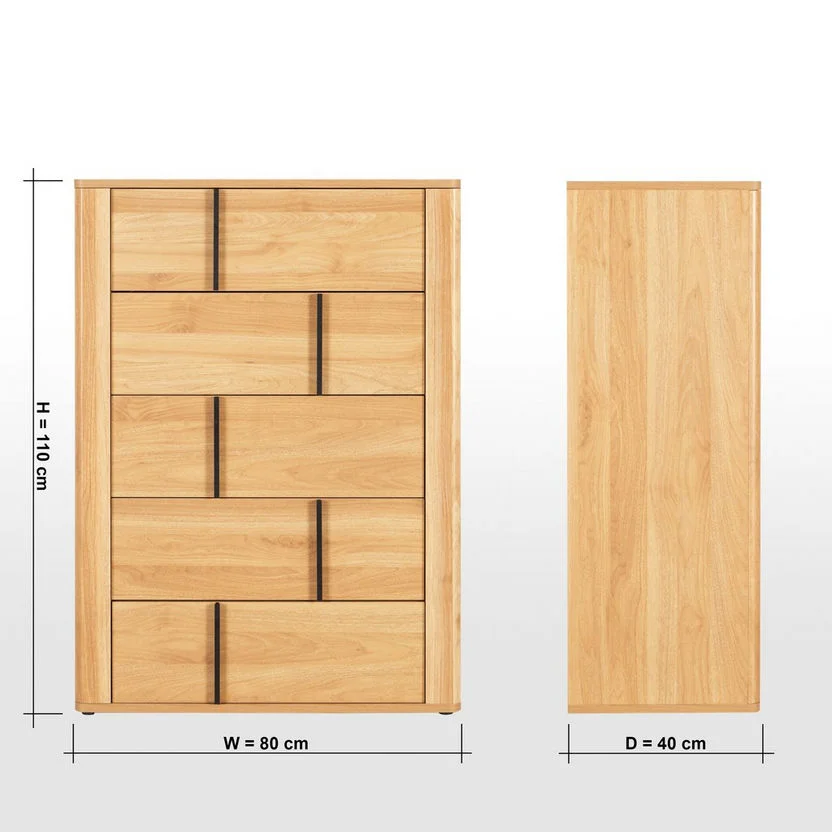 The chest of drawers features 5 spacious drawers, providing ample storage space for your clothes, bedding, or other belongings. The drawers feature a smooth-sliding mechanism that makes them easy to open and close.