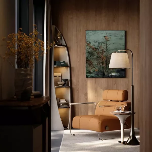 This stylish and functional shelf bookcase adds an aesthetic touch to any room or office. Made from high-quality engineered wood and Romanian beech wood, it's covered in premium leather for durability and luxury. Its smart design maximizes space, especially in corners, and is easy to clean with just a touch. Ideal for organizing books and décor, it comes in a modern color and comes with a two-year warranty against manufacturing defects.