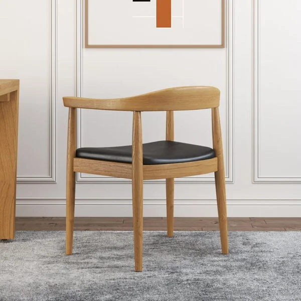 التنجيد مصنوع من جلد عالي الجودة يمنح مظهرًا فخمًا وإحساسًا عمليًا في نفس الوقت، كما يساعد على سهولة العناية مقارنة ببعض الأقمشة. ويأتي الكرسي بقاعدة وهيكل من خشب مع خشب زان متين عالي الجودة لضمان ثبات جيد وتحمل مناسب للاستخدام المتكرر.