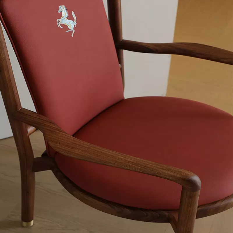 هيكل مصنوع من خشب هندسي وخشب زان متين عالي الجودة، مما يضمن المتانة والاستدامة. الكرسي مغطى بطبقة من الجلد الإيطالي الفاخر المبطن بالإسفنج عالي الكثافة، ليمنحك شعورًا بالراحة عند الجلوس لفترات طويلة.